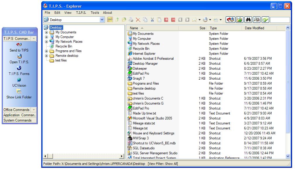 ShellObjects set of controls, specifically the ShellAppBAr, was also utilized to create a Command Bar with short cuts to their CRM system as well as many Windows and MS Office functions that their